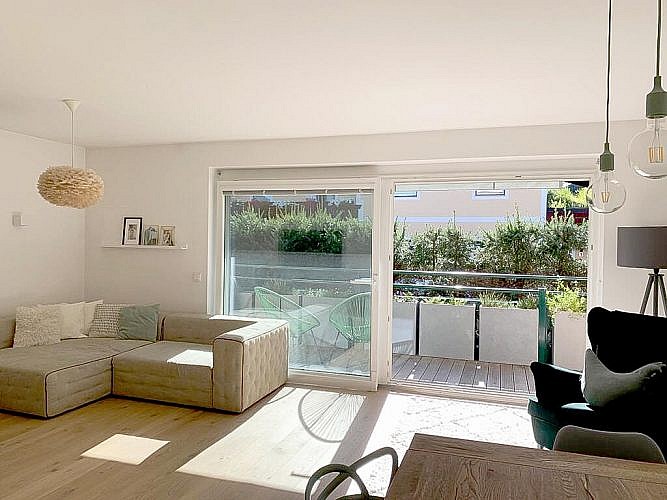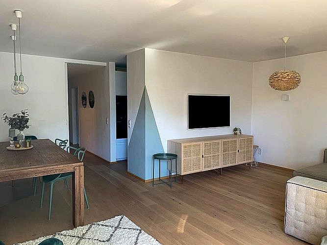 Die perfekt geschnittene Wohnung wurde im Jahr 2016 grundsaniert. Die Renovierung/Sanierung erfolgte ausschließlich mit hochwertigen Materialien und viel Liebe zum Detail. Die gesamte Wohnung verfügt über eine Fußbodenheizung. Das Wohn-Esszimmer ist großzügig gestaltet und verfügt über einen direkten Zugang zum westseitigen Balkon, einen der zwei Außenbereiche (Lärchenholz Dielen). Die Markise spendet im Sommer Schatten und der Infrarotstrahler an kühlen Herbsttagen eine angenehme Wärme.