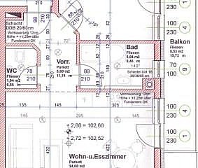 Badewanne über einen Waschmaschinenanschluss. Zur Wohnung gehören ein eigener abgemauerter Kellerraum und ein KFZ-Abstellplatz.