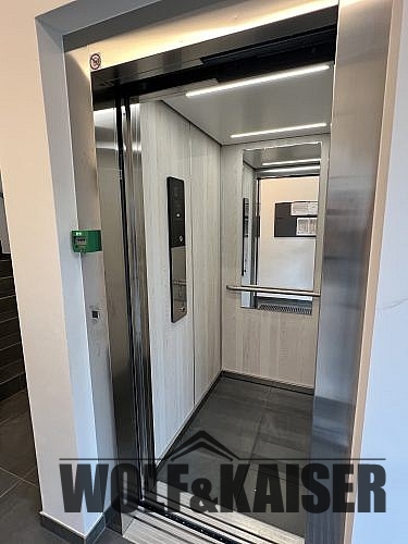 Der barrierefreie Zugang zu Wohnung wird durch den Lift gewährleistet, der mühelos in jedes Stockwerk führt.