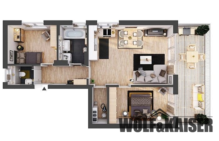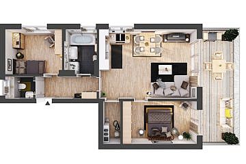 Die Wohnung besticht durch ihre hellen Räume und eine durchdachte Raumaufteilung. Beide Schlafzimmer sind mit elektrischen Außenraffstores versehen, die für angenehmen Sonnenschutz sorgen, während die integrierte Wohnraumbelüftung für ein stets angenehmes Raumklima sorgt.