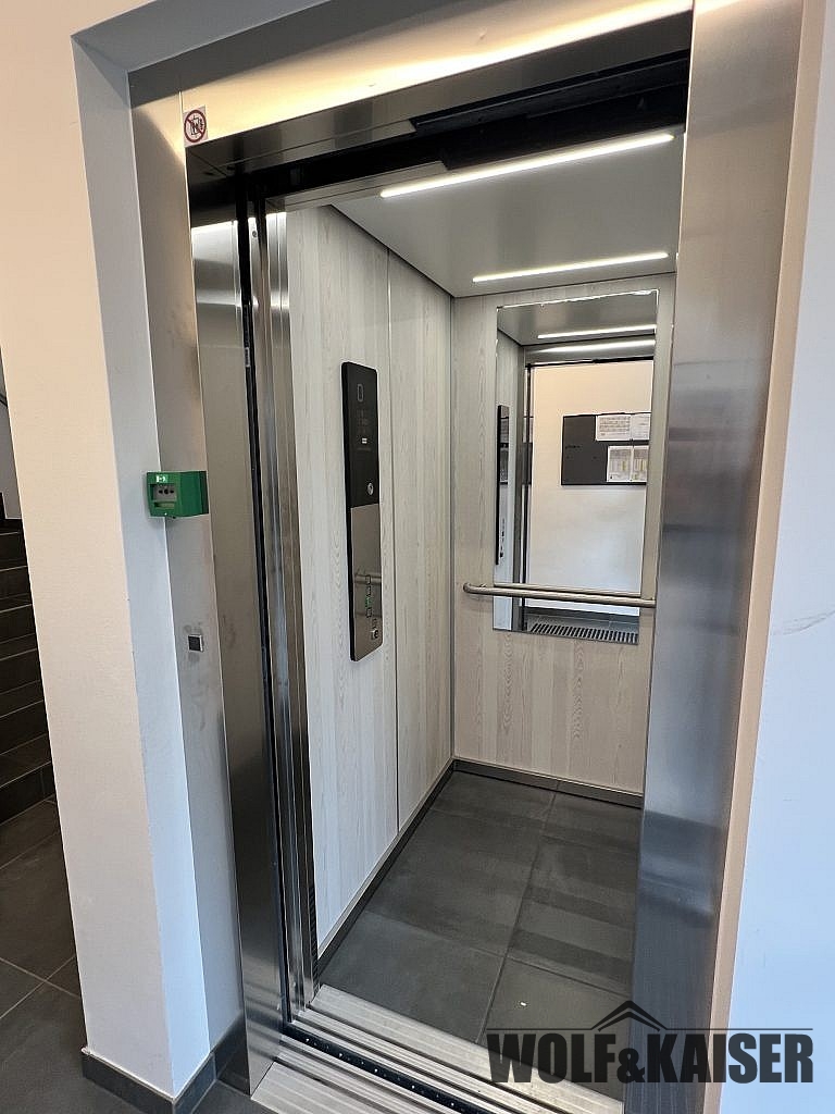 Der barrierefreie Zugang zu Wohnung wird durch den Lift gewährleistet, der mühelos in jedes Stockwerk führt.
