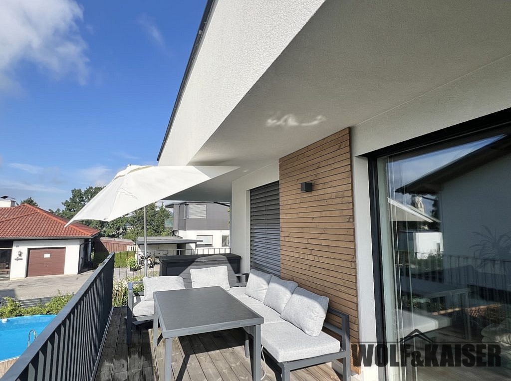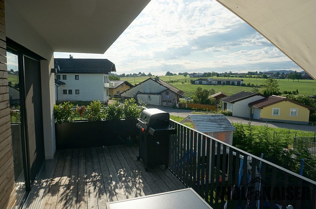 Vom geräumigen Wohnzimmer und auch vom Schlafzimmer gelangt man auf den großzügigen Balkon, welcher teilweise überdacht ist. Dieser bietet reichlich Platz für gemütliche Loungemöbel um die schönen Stunden in der Freizeit zu genießen.