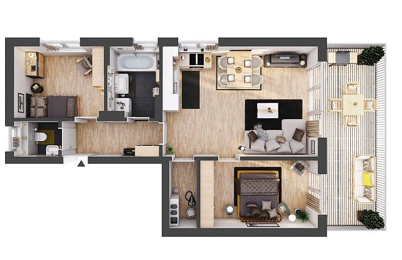 Die Wohnung besticht durch ihre hellen Räume und eine durchdachte Raumaufteilung. Beide Schlafzimmer sind mit elektrischen Außenraffstores versehen, die für angenehmen Sonnenschutz sorgen, während die integrierte Wohnraumbelüftung für ein stets angenehmes Raumklima sorgt.